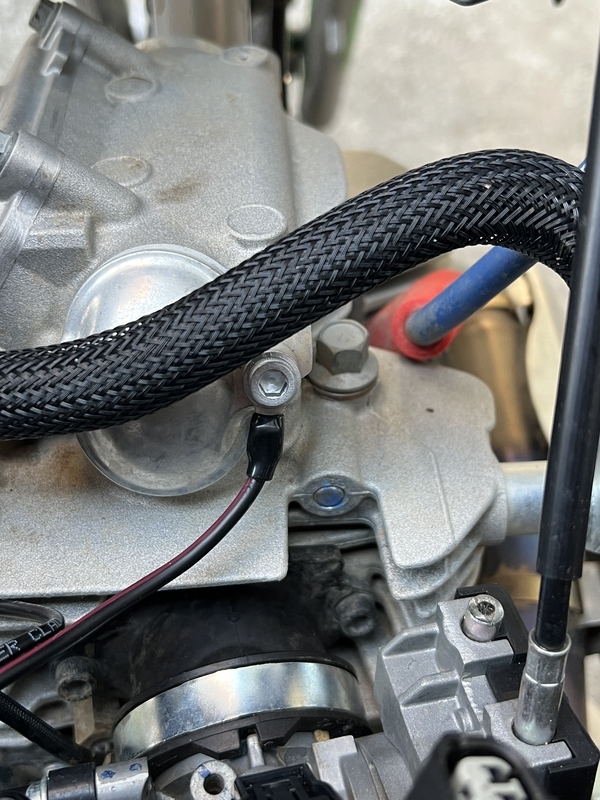 今度はシリンダーヘッド。こちらはタペットカバーのボルトを入れ替え、こちらにも“アーシングケーブル”を固定します。(右側がノーマル)